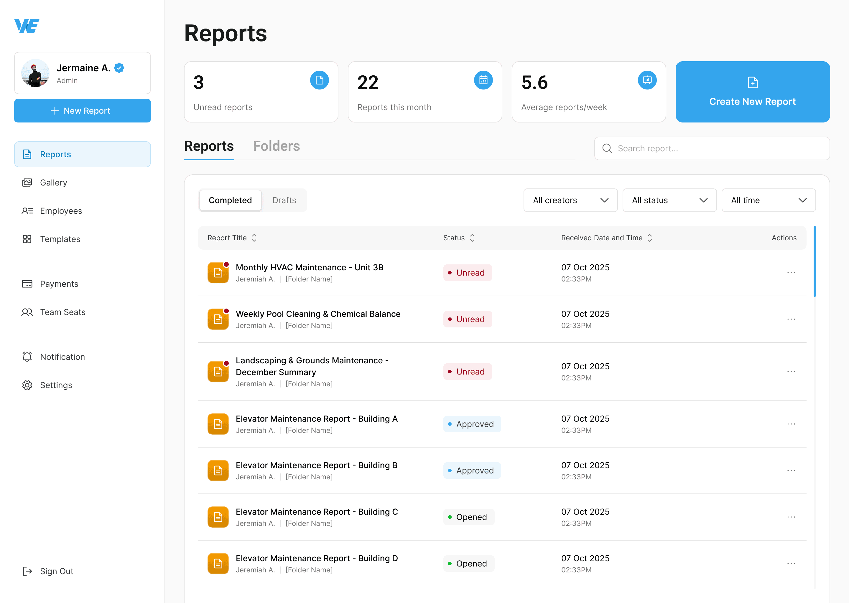 Review the work, approve it, and send professional reports to clients, all from one platform.