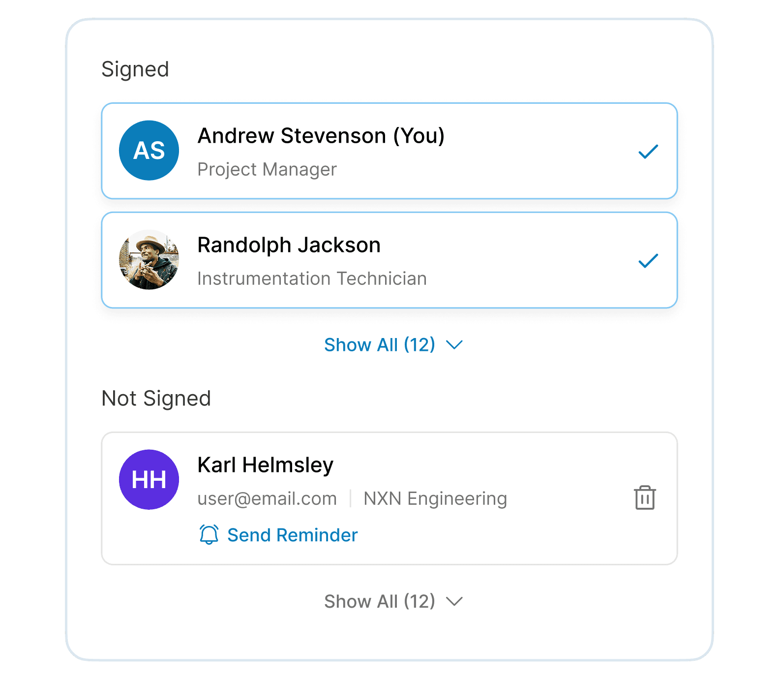 Workers sign SWMS and reports on any device. Track who signed, when, and which version.